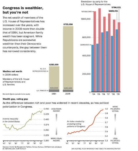I want to impress upon you those words, “Does the government work for us or do we work for the government?” This column in the Washington Post was so enlightening as to the rich getting richer and the poor getting poorer over the past twenty-five years. Oh, by the way, the article points out the “Middle Class” worker bees have only lost a little. We, the working class have not lost……so much! The mind-blowing revelation was the gain in wealth of our political elite. Look at this chart: